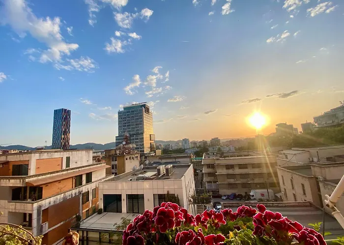 Tijdens een verblijf in Rtsh Apartment Tirana van 75 m² kunnen gasten zich ontspannen op een terras op 1 km van het Nationaal Geschiedenismuseum.